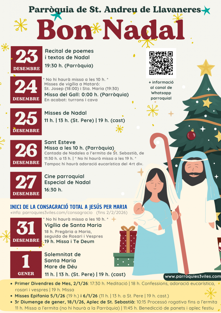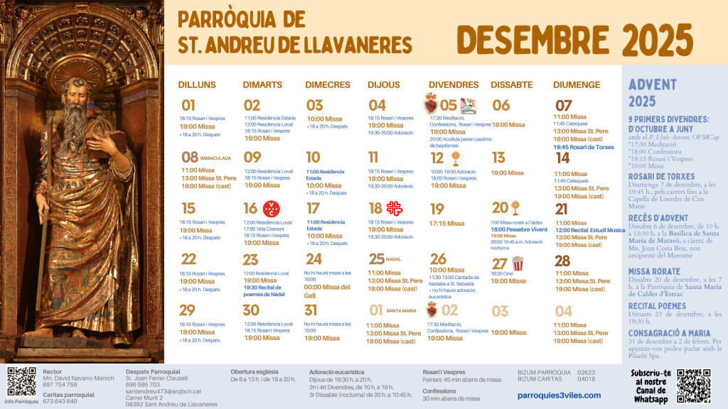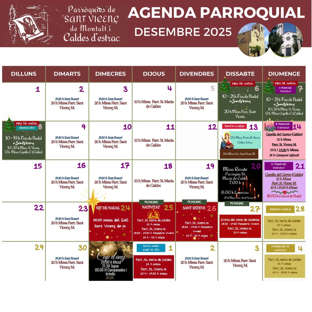 (Estem actualitzant la nostra pàgina web, disculpeu les molèsties. Trobareu els horaris de Nadal en la següent agenda i en els calendaris que s’adjunten a continuació)