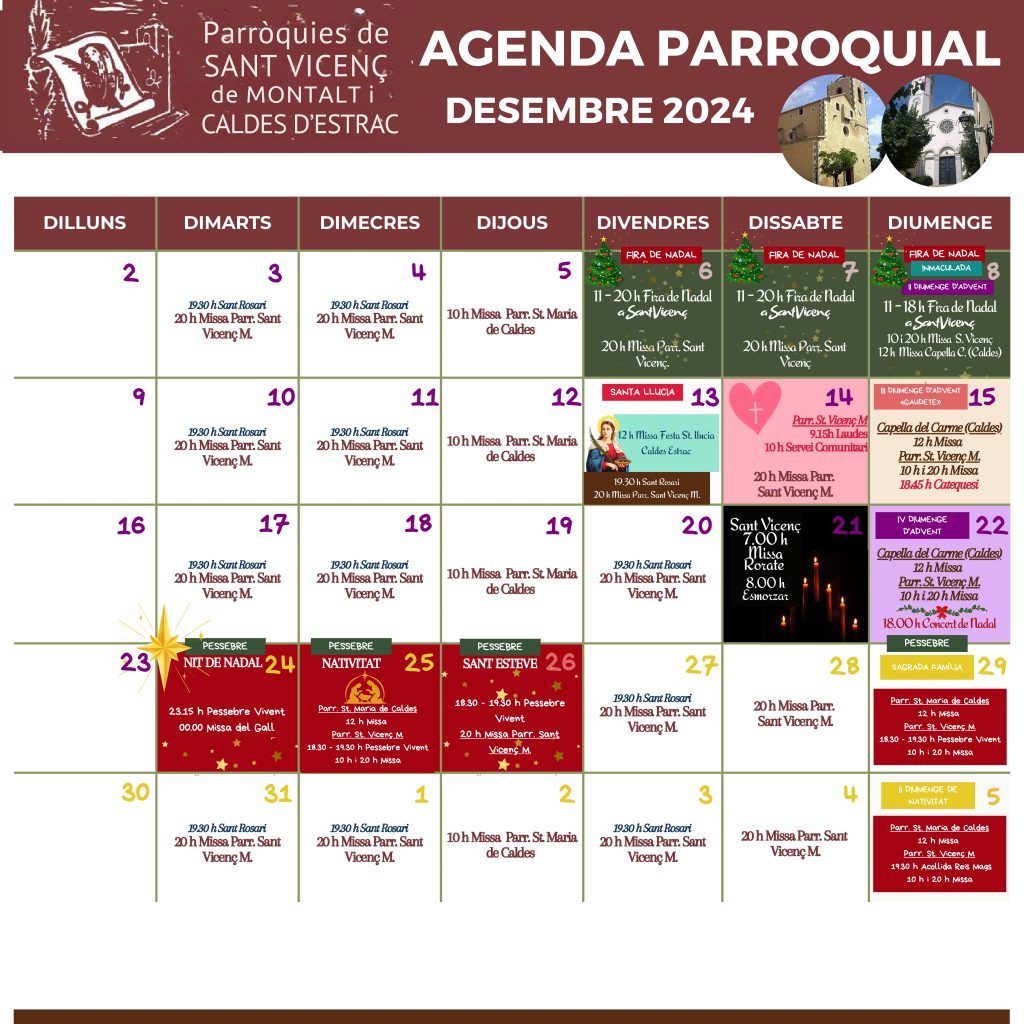 Agenda parroquial St. Vicenç i Caldes, mes de desembre
